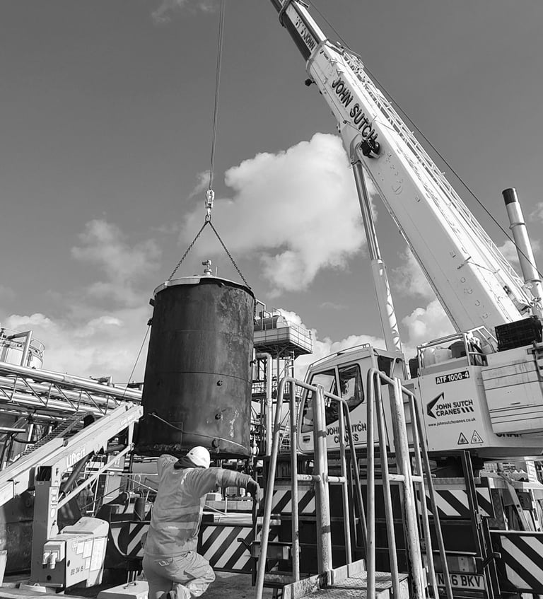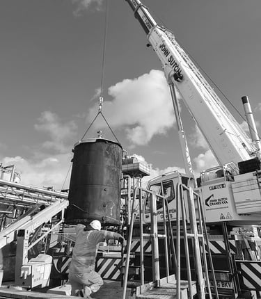DECOM issued daily permits to work and carried out daily meetings with all contractors and client teams, the first part of the project was removal of an above ground storage tank, Decom created all the tender paperwork, checked all lift plans were adequate and managed the removal and demolition of the tank, the tank was stuck to its bitsand base, Decom quickly came up with a plan that enabled the lift to go ahead and the tank was lifted into a safe position for demolition using conventional 360 machine demolition, 2 further tanks in the area were fully stripped, cleaned and inspected and repairs carried out to EEMUA 159 standards, to allow continued safe commercial use. One of these tanks was converted requiring installation of new pipework and plant in order to develop a new product. All work was carried out without any accidents or incidents, ahead of programme and within budget.