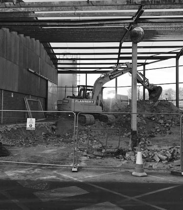 DECOM wrote all scope of work documentation, contracts and Pre Construciton Information as required by CDM2015 regulations. Decom liaised with demolition companies throughout the tender process and carried out a tender clarification meeting with the winning bidder to ensure all aspect of the project had been understood. Decom managed all work on site, issuing daily permits to work, trades included asbestos removal, demolition, civil engineering and steel erecting. Decom carried out audits and implemented our internal system of hazard spotting and reporting to ensure any potential issues were captured and reported before they become an accident statistic. Decom checked the demolition sequencing to ensure stability of the structure throughout. The structure was removed bay by bay back to the gable of a further warehouse, following demolition the area was leveled and a new concrete slab cast to allow the area to be used for storage and access for Fork Lift Trucks.